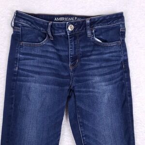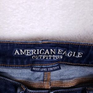 SEE MEASUREMENTS IN PICS BEFORE PURCHASING — USED ITEMS MAY STRETCH / SHRINK These American Eagle Ne(x)t Level Stretch jeggings offer a sleek skinny fit in a versatile dark wash. Features classic 5-pocket styling and heavy whiskering for a lived-in look. The "Long" sizing is perfect for taller frames. High-recovery fabric ensures they keep their shape all day.