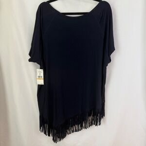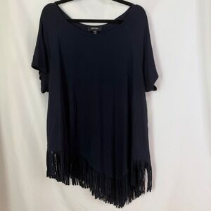 Karen Kane Navy Blue Asymmetrical Fringe Hem Tunic Top 3X NWT Boho Luxury $89