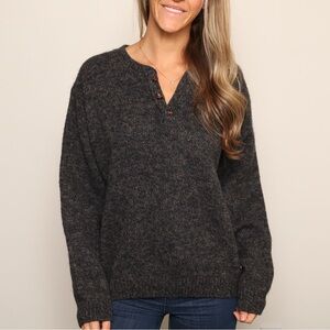 Charcoal wool sweater by Woolrich. Features a stylish button-up design.