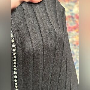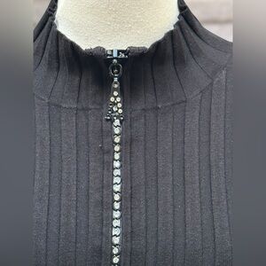 belldini vintage y2k zip sweater black ribbed knit rhinestone zipper fitted top long sleeve stretchy sparkly glam early 2000s retro chic minimalist sleek fall winter layering piece night out party wear classy elegant timeless trendy coquette preppy edgy revival retrocore