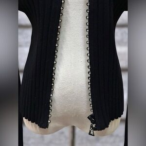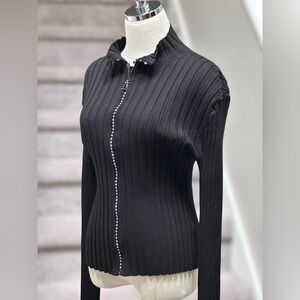 Vintage Y2K Belldini Black Ribbed Rhinestone Long Sleeve Zip Sweater Women’s XL