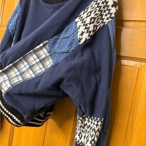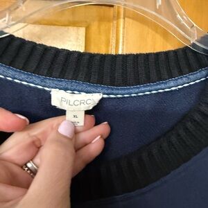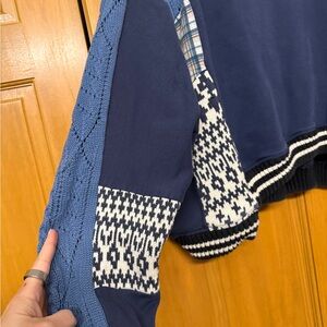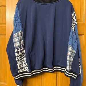 Pilcro Mixed Media pullover Navy and white sweatshirt
