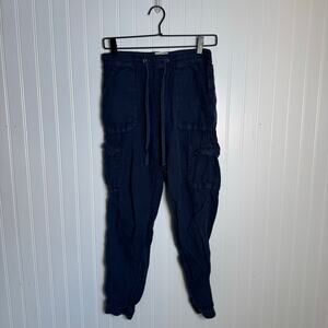 Nicole Miller 100% Linen Cargo Jogger Pants Navy Blue Women’s Size Small
