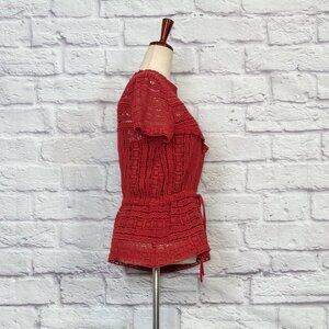 Carolina K Berenice Coral Red Cotton Crochet Peplum Top