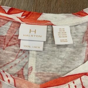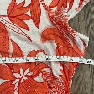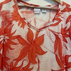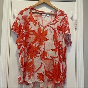 H By Halston Tee Shirt Women’s 2XL Coral Floral 100% Linen Blouse Top Colorful