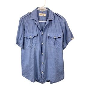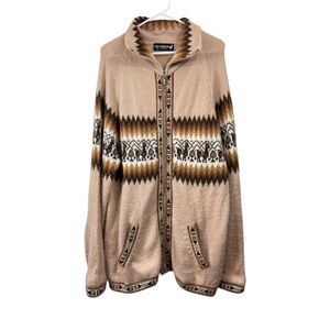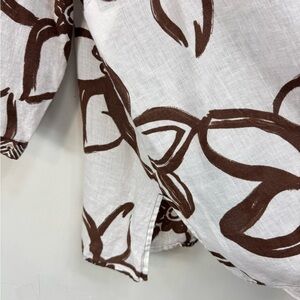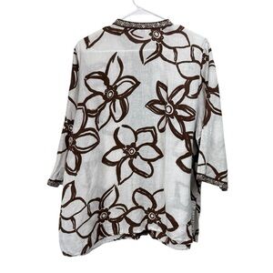 Laura Ashley Size 2X White Brown 3/4 Sleeve 100% Linen Beaded Tunic Blouse