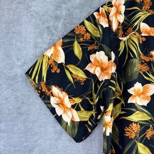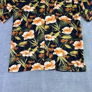 Jos. A. Bank Mens M 100% Silk Floral Tropical Hawaiian Shirt Black Orange Casual
