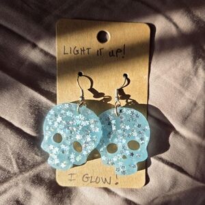 Brighten your look with these Light It Up blue skull earrings that glow in the dark! A fun accessory for any occasion.