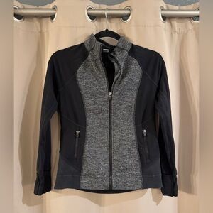 Chic blue pantsuit with bold black stripe. Ideal for office or formal events.
