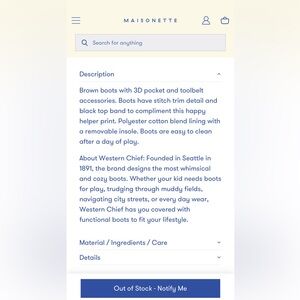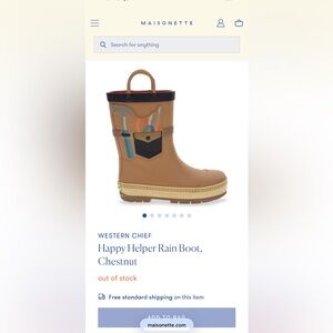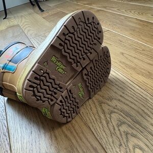 Western Chief Happy Helper rain boots in Chestnut. Size 8. Overall good condition, does have scratches on top of one of the boots, see pictures.
