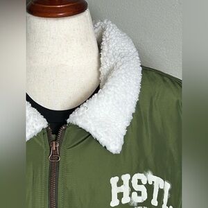 Green jacket with bold Snowday graphic. Features Hustle Gang branding. This jacket is a men’s 2xl in size.