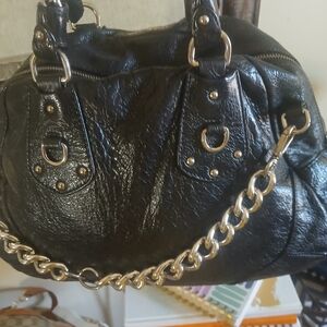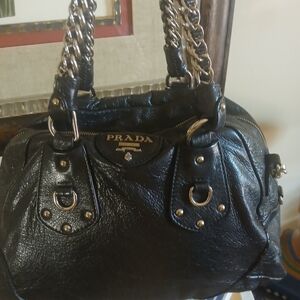 Prada Black Leather Shoulder Bag with Silver Accents