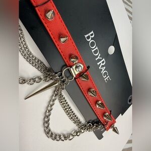 Spencer’s Body Rage Red Studded choker with Chains
