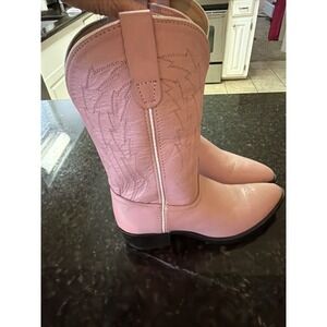 Pocono Western Girls Pink And White Cowboy Boots Sz 3.5 Pointed Toe Rodeo Countr