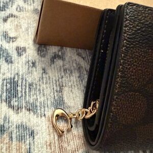 Chic Coach wallet in black. Gold logo and clasp detail. Coach brown and black logo wallet. Brand new with tags and gift box.