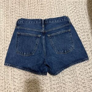 Tags: AGOLDE, Parker Long Shorts, Enamour shorts, denim shorts, high-rise shorts, heritage denim, relaxed fit shorts, non-stretch denim, casual shorts, regenerative cotton, sustainable denim, womens shorts, summer shorts