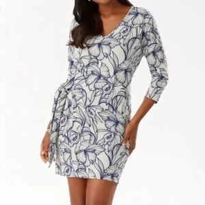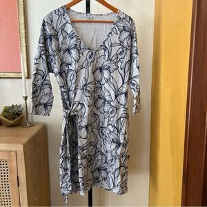 Tommy Bahama Heather Sands Dress Floral Wrap Tie Waist V-Neck Gray Blue Size M