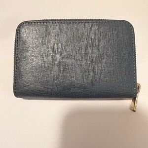 Chic navy wallet by Furla. Features textured leather and gold accents.