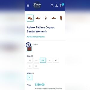 Aetrex Tatiana Cognac Sandal Women's. Size 10