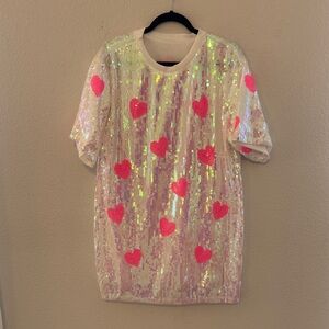 Sparkle in style with this sequin top featuring vibrant pink hearts. Perfect for adding a touch of fun to any outfit. Brand new without tags.