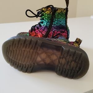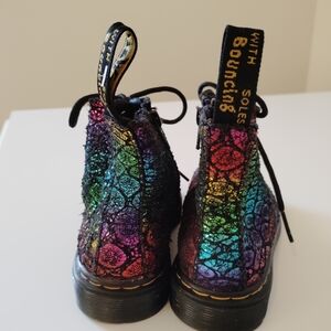 This pair of dr. martens 1460 Pascal rainbow croc metallic suede boots are in excellent condition they are new but do show some signs of wear on the toe box due to storage