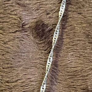 This pendant comes paired with an 18‑inch sterling silver twisted curb chain, stamped 925, weighing 2 grams. The chain offers a sleek, modern shine that complements the pendant beautifully without overpowering its classic Pandora styling.