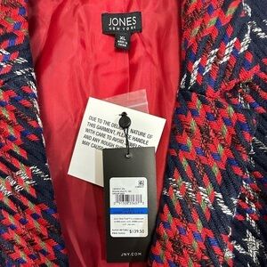 NWT Jones New York Red Black Blue Open Jacket
