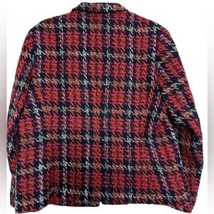 NWT Jones New York Red Black Blue & White Woven Plaid Open Jacket
