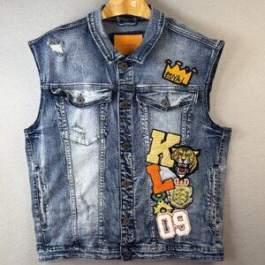 KLOUD9 Jeans Vest Mens Size XL Patchwork Embroidered Biker Rocker Acid Wash Y2K