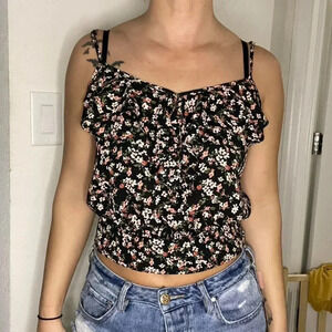 Forever 21 Black Floral Ruffle Sleeveless Top