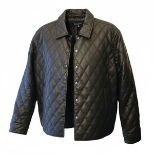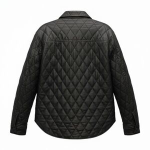 Elegant black leather jacket with quilted design. Ideal for chic layering.