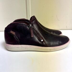 ECCO Soft 7 Low Bootie Women 9 Purple brown Leather Zip Sneaker Comfort Shoe