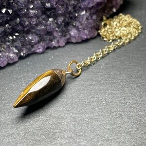 Genuine Yellow Tiger’s Eye Gold Plated Pendant Necklace