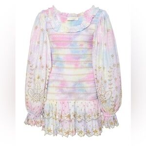 LOVESHACKFANCY SMOCKED CELIA TIE DYE MINI DRESS SIZE MEDIUM