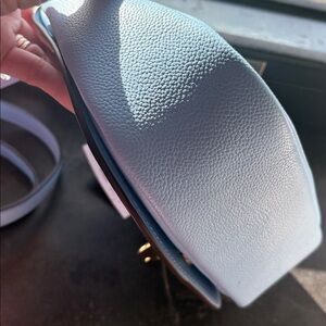 Elegant light blue crossbody bag. Removable strap.