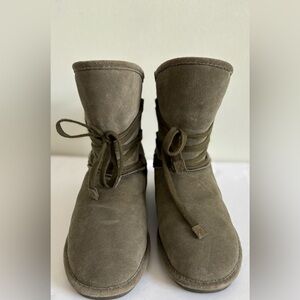 Stylish BearPaw boots with khaki suede. Soft fleece interior. Perfect for cold weather.