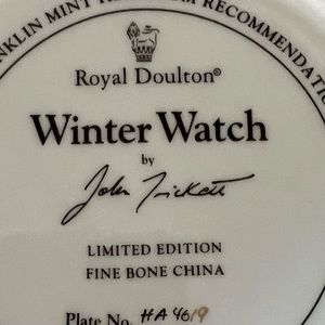 The Franklin Mint Heirloom Recommendation ROYAL DOULTON ENGLAND “Winter Watch” Snow Snowy LABRADOR RETRIEVER Dogs in The Snow LIMITED EDITION Collector FINE BONE CHINA PLATE No. HA 4619