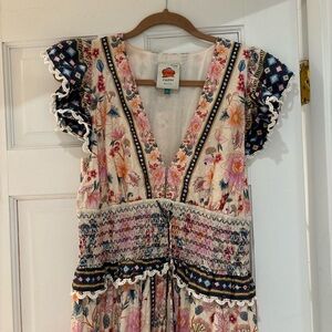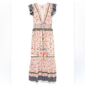 Farm Rio Superbloom Tapestry Ruffle Cream Maxi Dress Large