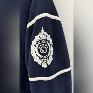 St. John Sport Varsity Cardigan Full Zip Gold Button Embroidered Patch Large