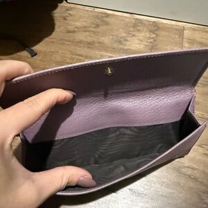 Elegant purple leather wallet for women, perfect for organizing essentials with style. Used but in great condition