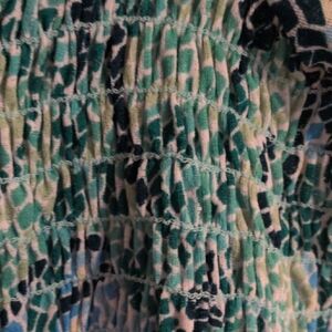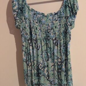 Venezia Green and Blue Smocked Cap Sleeve Blouse