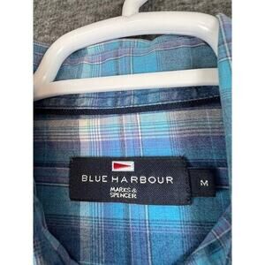 Marks & Spencer Blue Harbour Blue Gray Plaid Mens Medium Shirt