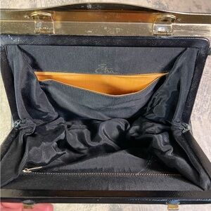 This is a vintage handbag made from black leather in France in the 1960's by Etra.