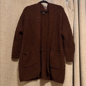 Stay warm and stylish with this cozy brown sweater. Perfect for layering, this sweater adds a touch of elegance to any outfit.