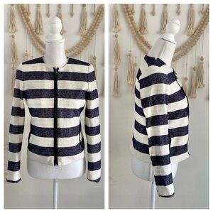 Gap navy blue cream striped slub knit jacket americana nautical fall layer 4