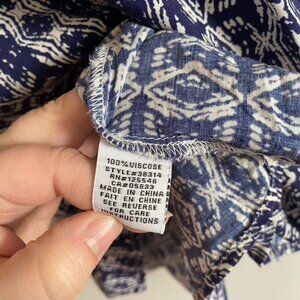 Habitat Blue and White Mayan Border Tunic Top