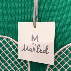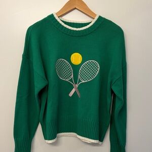 M by Marled Stylish green sweater featuring a tennis racket and ball design. Perfect for sports enthusiasts. New