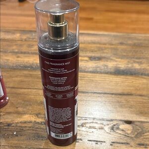 Celebrate the season with this festive fragrance mist. Red bottle with gold accents. Perfect for holiday cheer.