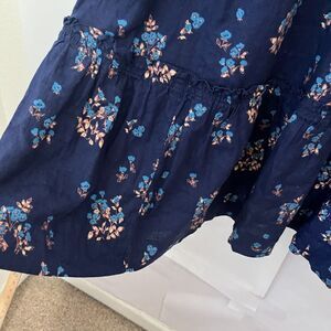 Free People Women's Dress Petite Fours Blue Floral Size S Tie Back Deep V Ruffle