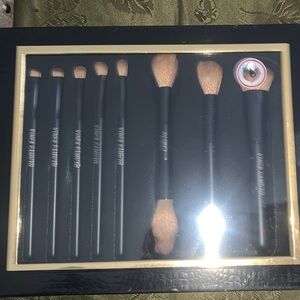 🆕- VINCE CAMUTO Stylish brush set with sleek black handles and gold accents. Ideal for makeup application, gift, new brushes, makeup, party, Designer, Set, Skin, Brushes